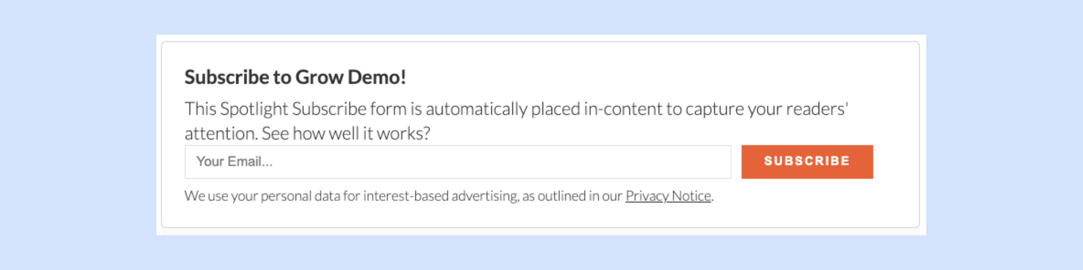 Here’s a breakdown of what a reader sees when subscribing to your newsletter via Grow!