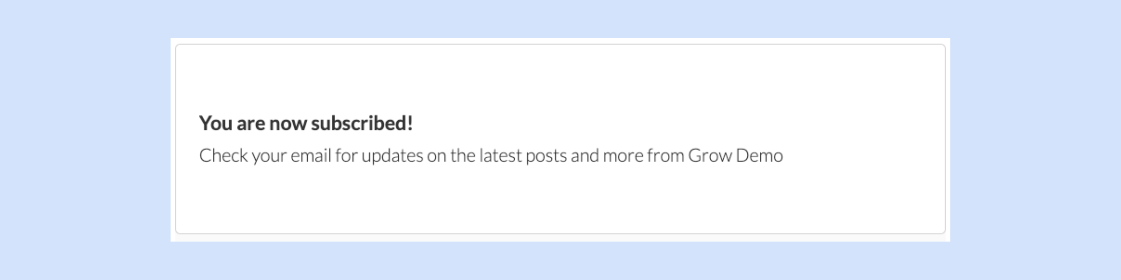 After the reader has clicked Subscribe and the consent box, they’ll get a confirmation message: