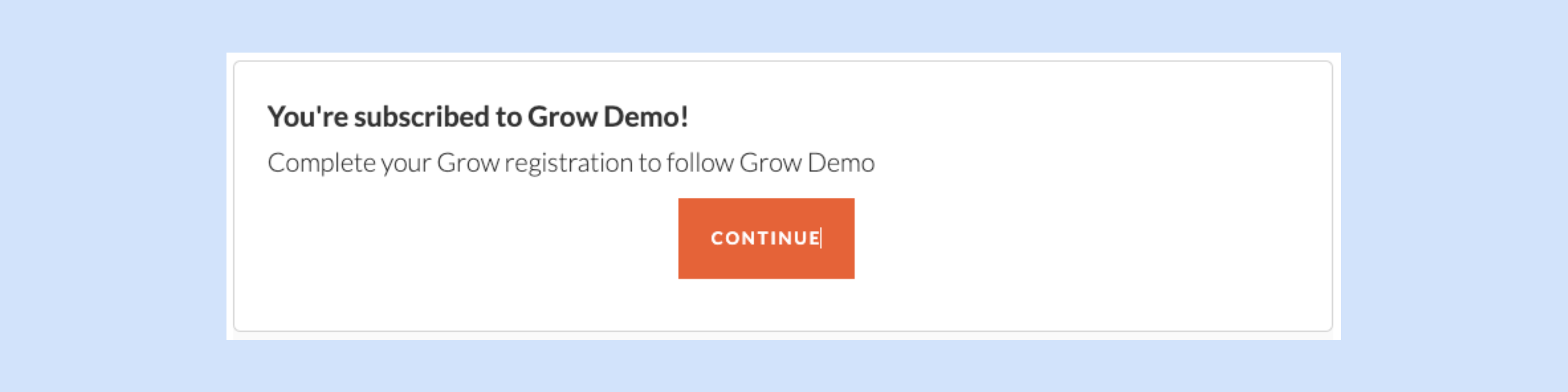 Clicking the Subscribe button on the Subscribe form or the Continue button on the Call to Action will launch the Grow account sign up/login modal in a new window, allowing readers who choose to create Grow accounts to easily do so. Readers can close this window if they do not wish to create a Grow account and will stay subscribed to your mailing list.